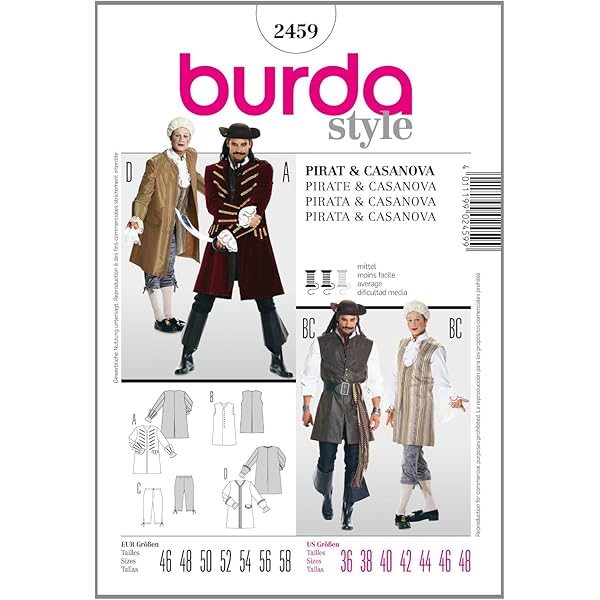 Sewing Pattern Burda 2452 Costume Children Pirate En Ger Fr Fabrics Hemmers